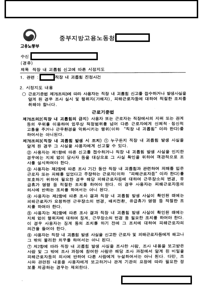 직장 내 괴롭힘 위탁조사(폭언에 따른 괴롭힘 인정)